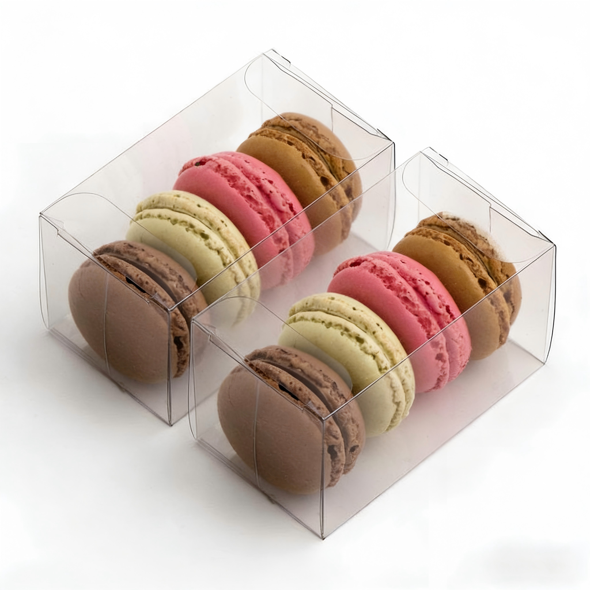 The rigid PET structure provides reliable protection against crushing,deformation, and moisture, safeguarding macarons during transport, display,and storage. Its reinforced edges and stable base prevent breakage, maintaining the delicate shape of your products.