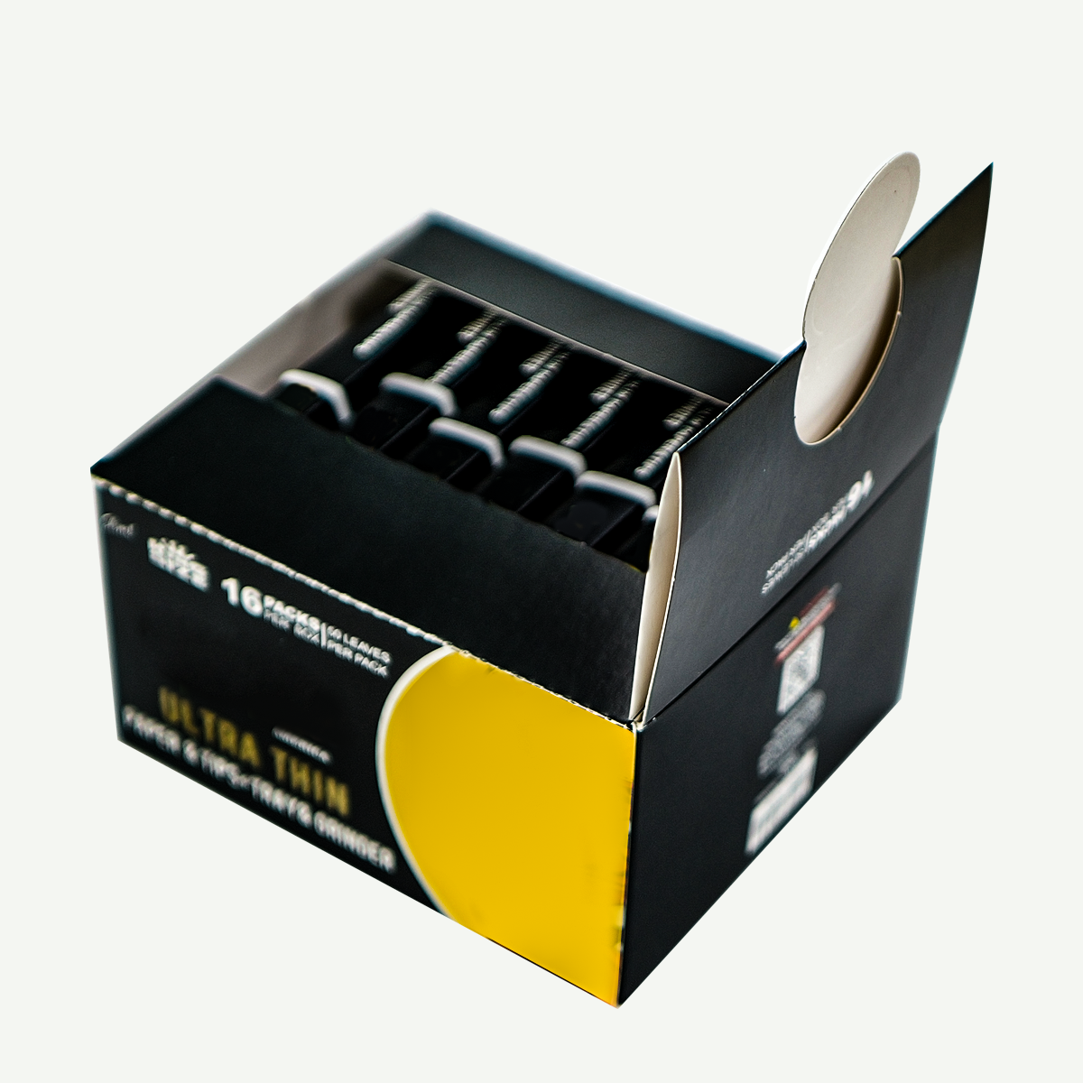 Our packaging is purpose-built to accommodate the full range of rolling kit components—rolling paper, filter tips, tray, and grinder—eliminating the need for separate packaging. This cohesive design enhances product completeness, simplifies inventory management, and delivers a premium unboxing experience that aligns with the convenience-focused needs of hand-rolling enthusiasts