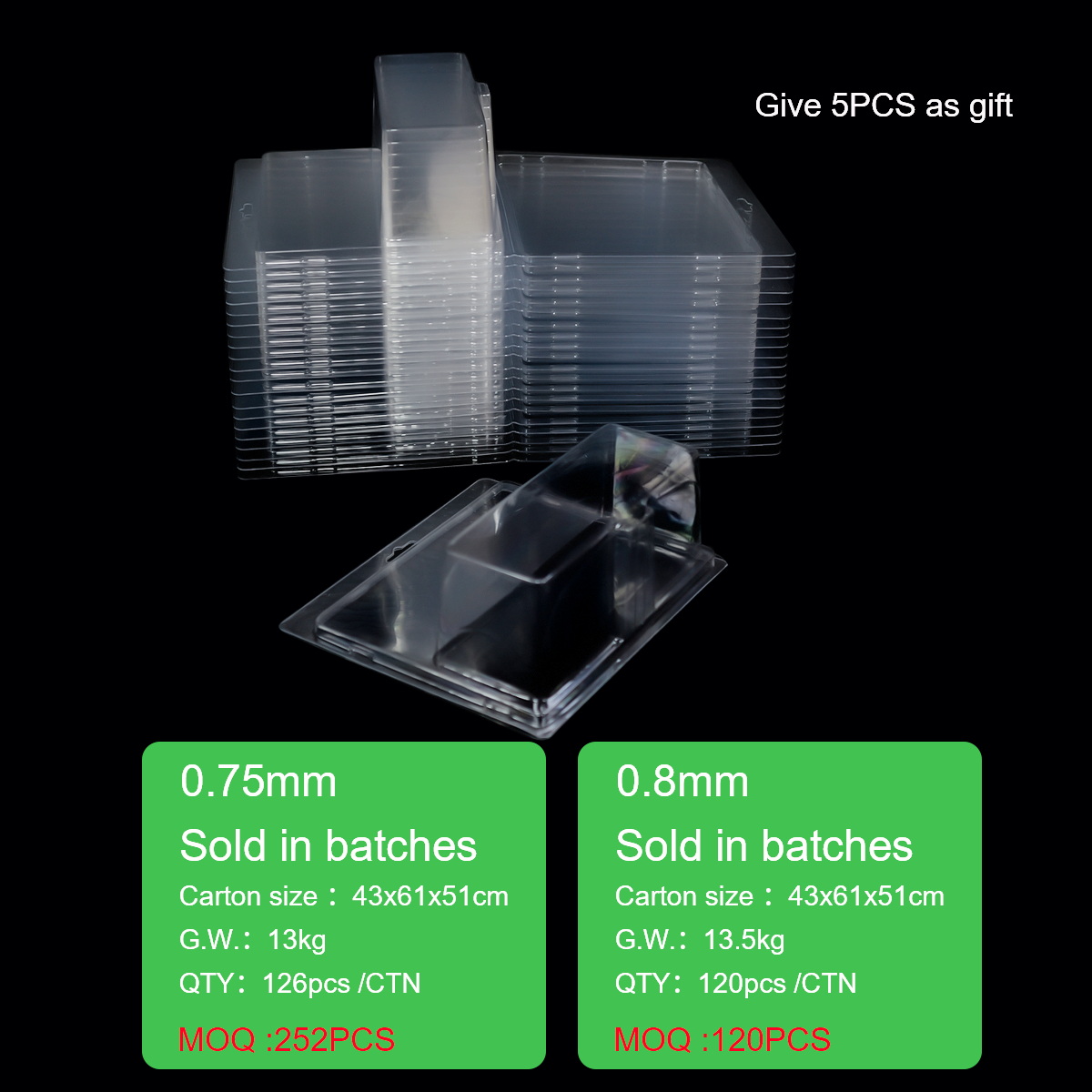 A2:Both are premium thickened PET. The 0.8mm version offers higher impact resistance and rigidity, ideal for long-term collection and shipping. The 0.75mm version is a cost-effective choice for daily display and storage.